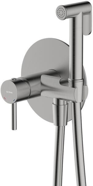 Rejtett bidé keverő komplett keverővel, nyitott és rejtett beépítéshez. - keverőtest sárgarézből - 25 mm-es kerámiafej, amely pontosan szabályozza a hőmérsékletet és a vízáramlást - 42 mm átmérőjű rozetta - komplett 1-funkciós bidé kézi zuhanyzóval és 150 cm hosszú PVC tömlővel, csavarásgátló funkcióval - szín: nikkel